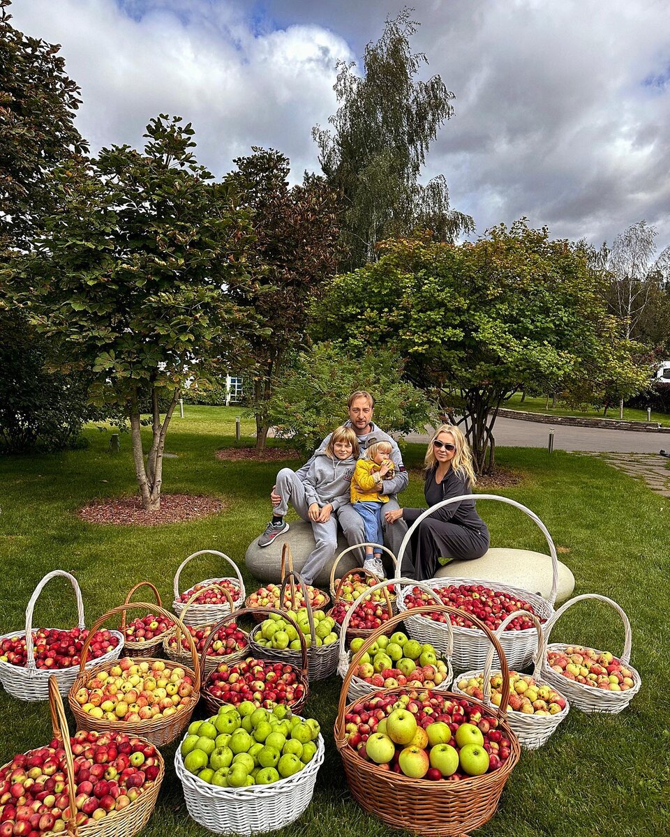 Семейное счастье в саду: Яна Рудковская демонстрирует урожай яблок
