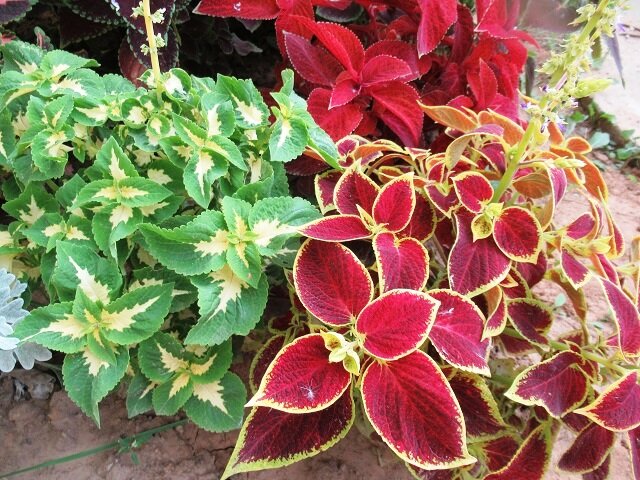 Удивительно, но в природе нет бесполезных растений, даже если они не цветут, или цветы малопривлекательны, то притягивают взгляд своей красивой и роскошной листвой. В этой небольшой статье расскажу о таких растениях, которые растут на моих двух участках, рядом с домом и на даче. Колеус. Эти комнатные цветы, которые интересуют меня в первую очередь как однолетники, я выращиваю не так давно, каких - то несколько лет. Однажды увидела роскошное цветение колеса на клумбе рядом с многоквартирным домом в городе и поняла, что это мой цветок. Все колеусы это производная от селекционеров в разных вариациях от колеуса Блюме, и расцветка разная, и края могут быть волнистыми, и высота на выбор. Каждый год выращиваю и из черенков, понравившиеся экземпляры заношу в цветочных горшках осенью на зимовку. Колеусы лучше всего высадить в тенечек, нынче у меня растут на солнце, так приходится постоянно бегать с утра с лейкой в жаркие дни, иначе начнут вянуть листья. Цинерария. Выращиваю из семян этот красив