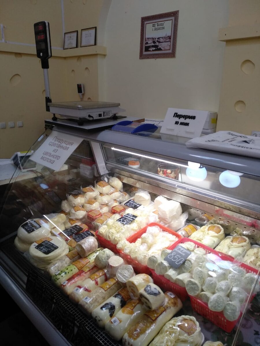 Друзья, привет 👋 Мы гостили в Костроме 3 дня и 7.08.2023 перед отъездом решили зайти в один из образцовых памятников градостроительного искусства, торговых рядов Сусаниной площади, магазин под названием «Сырная биржа» находиться по адресу:ул. Мучные Ряды, 1, Кострома (помещение 53) Зашли мы конечно целенаправленно, догадались зачем? Конечно, чтобы купить сыра. Местные сыровары готовят поистине чудесный сыр с разным вкусами. Купили мы сыр с пажитником, с трюфелем, моцареллу со вкусом зелени, моцареллу слабосоленую, да еще 900 граммовое ведерко топленого масла. Сейчас расскажу про цену: Полутвердый сыр с трюфелем- 990 рублей за 1 кг, Сыр с пажитником - 565 рублей за 1 кг, Сыр моцарелла слабосоленая за головку - 250 рублей, Сыр моцарелла со вкусом зелени -180 рублей за лепешечку. Мы эту лепешечку сразу же стали пробовать, нежнейшая, свежая, ум отъешь) Немного разочаровал персонал - уставший, не приветлив. Пройдя вперед купили сувениры. Обязательно надо привезти домой черную с