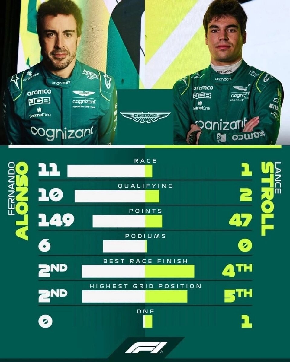 Многие эксперты еще после первой части сезона, неоднократно твердили и даже приводили расчеты, что если бы за рулем второй машины Астон Мартин был бы условный "Риккардо, Гасли или Боттас", то команда занимала прочную вице-чемпионскую позицию.