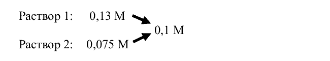 Способ 2. Объёмы 0,13 М и, соответственно, 0,075 М раствора можно вычислить так: