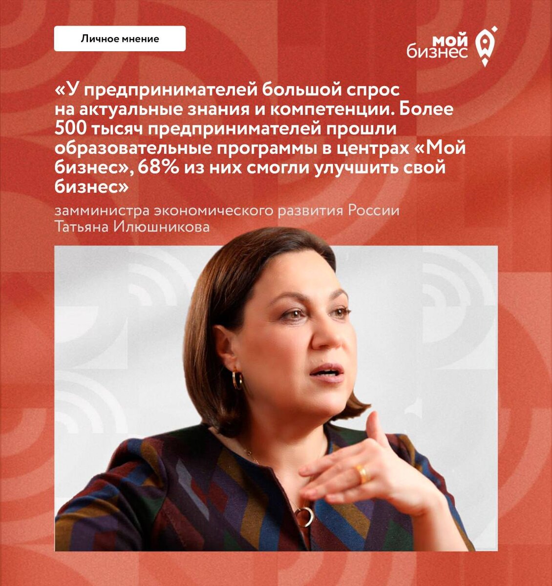 Татьяна Илюшникова: «У предпринимателей большой спрос на актуальные знания и компетенции. Более 500 тысяч предпринимателей прошли образовательные программы в центрах «Мой бизнес», 68% из них смогли улучшить свой бизнес» Замминистра экономического развития РФ Татьяна Илюшникова в рубрике #личномнение делится результатами исследования ПРИМ Сбербанка и Минэкономразвития РФ. Сколько предпринимателей стремятся получать новые знания — читайте в карточках👆 Напомним, что поддержка татарстанского бизнес-сообщества реализуется Центром «Мой бизнес» подведомственного Министерству экономики Республики Татарстан в рамках нацпроекта «Малое и среднее предпринимательство и поддержка индивидуальной предпринимательской инициативы», который инициирован Президентом России.