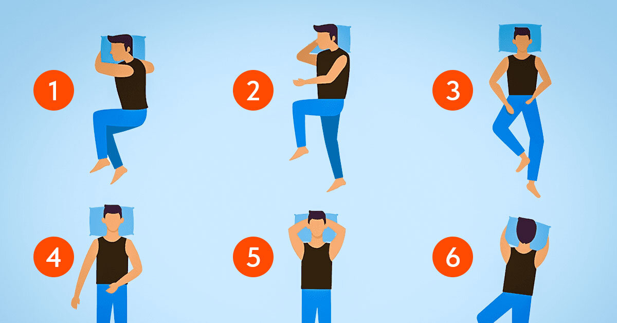 Поза, в которой вы засыпаете, — и физиологическая особенность, и показатель того, какой у вас характер. Психологи уверены, что положение тела человека во время сна указывает не только на то, что ему так удобно лежать, но и на его ведущие личностные качества. Пройдите быстрый тест по позе для сна, чтобы узнать о себе много нового. Ниже вы можете видеть рисунок с шестью силуэтами. Выберите номер позы, которую вы чаще всего принимаете, когда отправляетесь ко сну. А потом ознакомьтесь с результатами этого простого психологического теста. Занимательный тест по позе для сна: расшифровка Поза № 1 Вы привыкли засыпать, свернувшись калачиком? Это говорит о том, что вам хочется получать больше внимания. Вы испытываете недостаток заботы. Выбранная вами поза для сна также указывает на то, что вам очень тяжело открываться новым людям. Вы себя чувствуете комфортно только в кругу самых близких. В обществе незнакомых людей вам хочется молчать и не поддерживать ни с кем зрительного контакта. Из-за этог