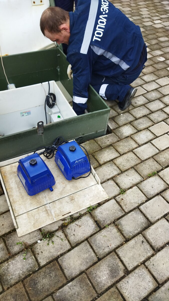 2. Демонтируем из отсеков очистного сооружения компрессоры и насос (в случае принудительной модели), переносим их в теплое техническое помещение до весеннего запуска;