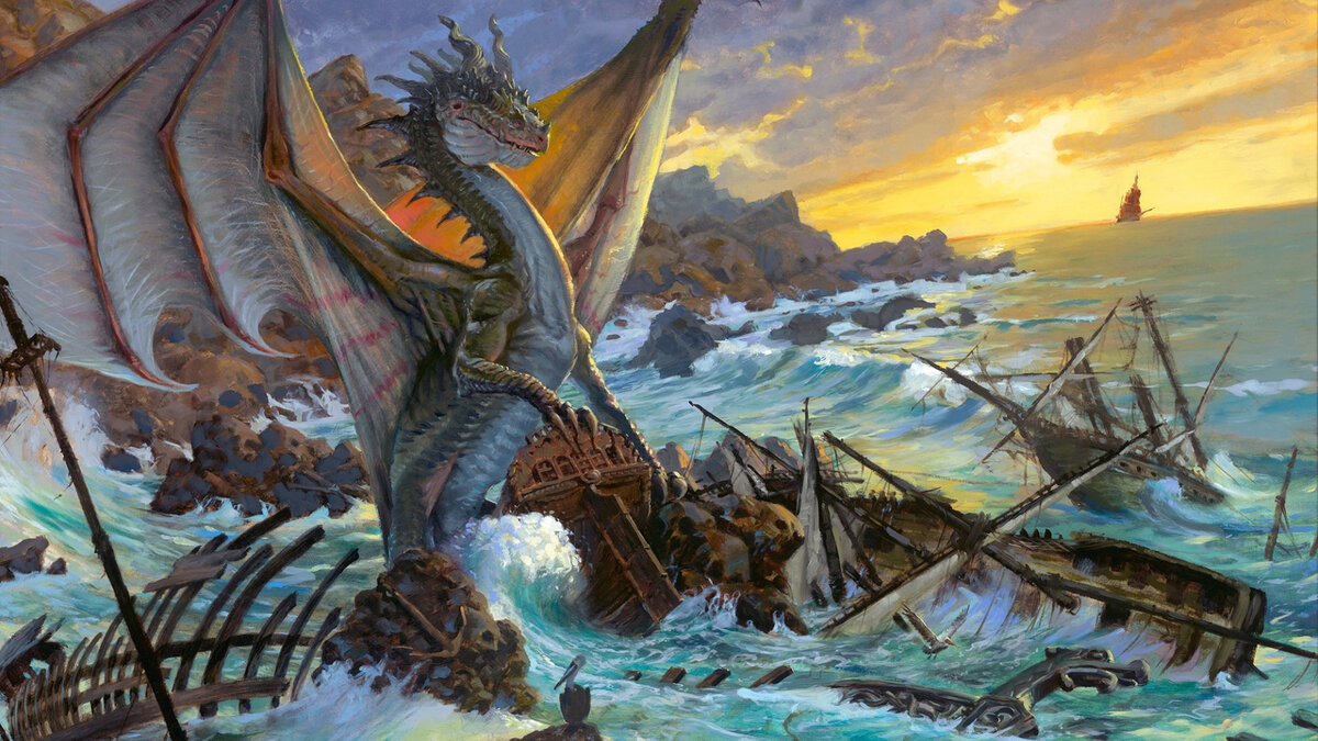 Как бы там не было, но спустя две недели, когда Драконы решили наказать непокорных и налетели на столицу, варвара в городе не было. Однако из девяти налетевших Драконов, только двое израненными успели убраться восвояси. Могучие и Непобедимые Драконы оказались простыми ящерицами, с тонкой нежной кожей. Они плохо видели вблизи и были очень неповоротливы на земле. Правду сказать, из полусотни учеников варвара уцелело меньше половины. Теперь за уничтожение ящериц взялись воины, в сверкающих доспехах, рослые, золотоволосые, голубоглазые — настоящие мужчины и покорители морей. Нет, обученных драконоборцев было не больше трех сотен на всем архипелаге, но крылатым ящерицам казалось, что их много тысяч. Куда бы они не прилетали, их теперь везде встречали острым железом. Стало модным вешать на воротах замка или на носу корабля драконьи головы. А где-то эти головы появлялись на крыше деревенской корчмы. А тех, кто еще не обзавелся таким украшением, громко хулили на каждом углу и считали недоделанными. Одиночные нападения давно прекратились, рептилии не осмеливались высунуться со своих островов меньше чем дюжиной за раз. И все равно в каждый налет они оставляли на земле людей свои трупы. Драконье племя быстро уменьшалось в размерах. Драконы очень долго живут, но рождаются редко. Теперь им уже не требовались новые земли и рыбные угодья, даже старых было слишком много. И ящерицы решили сделать перерыв (взять тайм-аут), прекратить ненужную войну пока не вылупились и не выросли новые драконы. Разумеется, перемирия они не заключали. Зачем? Им нечего было опасаться на своих островах. Любой корабль, подошедший близко был легкой добычей для огня с неба. Но, ... небо решило иначе.