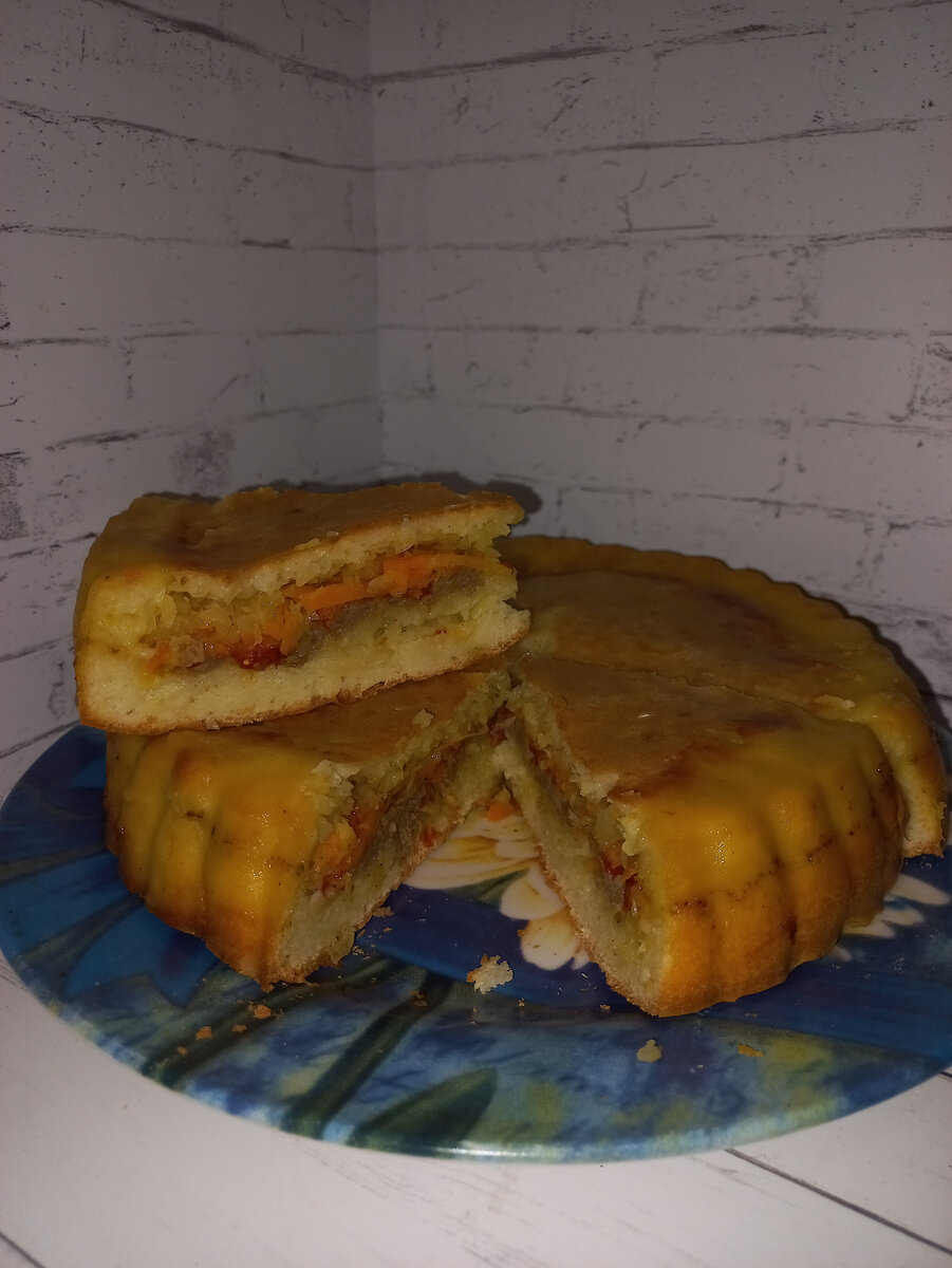 Масло растительное Приготовление: Взбить яйца, добавить молоко, соль, постепенно вводить муку — мешать до однородного состояния теста (тесто должно быть не слишком жидким, но и не густое). В конце замеса добавить разрыхлитель и залить тестом содержимое формы. Форму для выпечки смазать маслом. Выложить часть теста в форму. Выкладываем начинку: нашинкованную капусту, на нее — тертую морковь, сверху закрыть тонкими полукругами помидор — подсолить, посыпать паприкой с чесноком. Фарш посолить и поперчить по вкусу, размешать и уложить поверх овощей, чуть отступая от края. Залить оставшимся тестом содержимое формы. Духовку разогреть до 180 градусов. Выпекать 40-50 минут. Приятного аппетита!