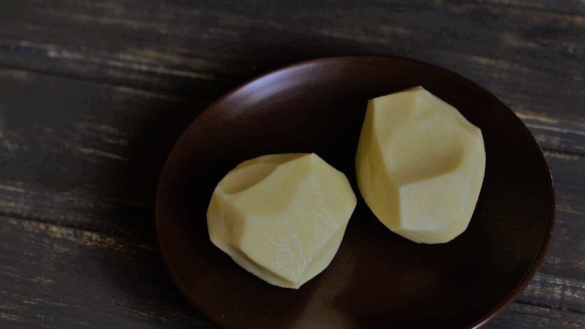 Ингредиенты: Картофель 2 шт., Яйцо куриное 1 шт., Масло сливочное 30 г.,Соль по вкусу, Перец черный молотый по вкусу.