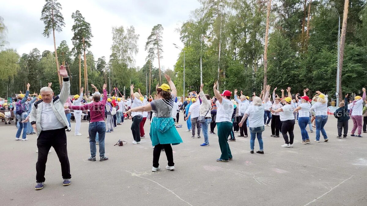 Жители подмосковного Ногинска не поверили своим глазам внезапно увидев на площади Центрального парка сразу две сотни пляшущих пенсионеров. Массовое исполнение сальсы и других танцев стало сюрпризом от участников «Активного долголетия» Ногинска и их гостей из городских округов Электросталь, Щелково, Лосино-Петровский, Черноголовка и Фрязево. В рамках физкультурно-спортивной акции «Зарядка долголетов» они приняли участие в подвижных мастер-классах — по фитнесу и танцам. «Я очень довольна. Были замечательные физкультурные упражнения, очень здорово, что в программу включили сальсу — это очень популярное сейчас танцевальное направление. Будем стараться продолжать посещать мастер-классы по этому танцу и дальше» — рассказала 85-летняя танцовщица из Черноголовки Юлия Леонидзе. По ее словам, в Черноголовке, как и в других округах Подмосковья, очень насыщенная жизнь в «Долголетии» — поклонники активного образа жизни пять раз в неделю занимаются лечебной физкультурой, дыхательной гимнастикой Стре