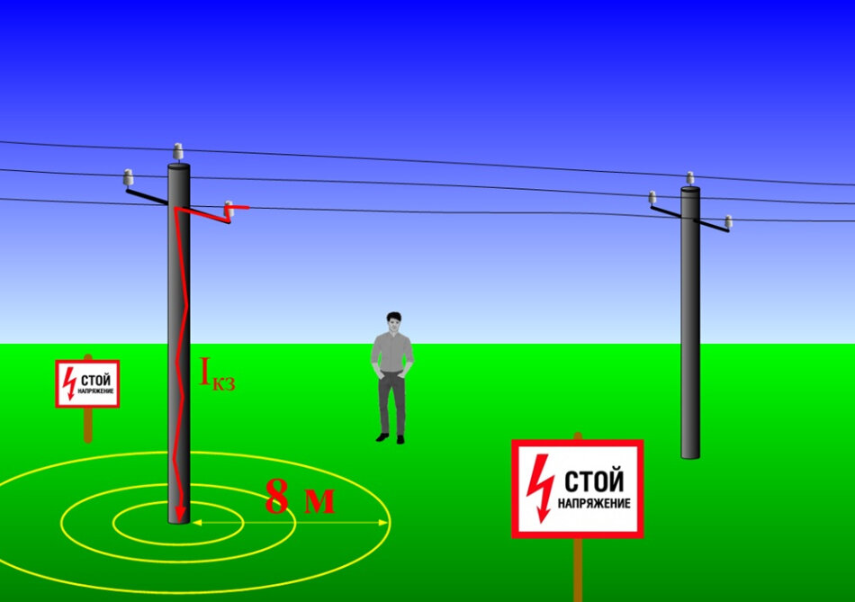 Поскольку шаговое напряжение представляет собой опасность для жизни, нужно быть предельно внимательными, находясь в потенциально опасной зоне.
