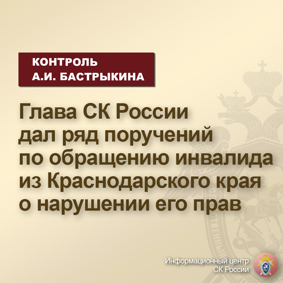 Глава СК России дал ряд поручений по обращению инвалида из Краснодарского края о нарушении его прав
