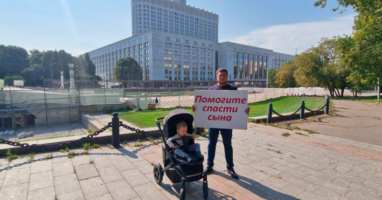 Отец ребенка со СМА Дмитрий Бахтин снова вышел на пикет — на этот раз у Дома правительства