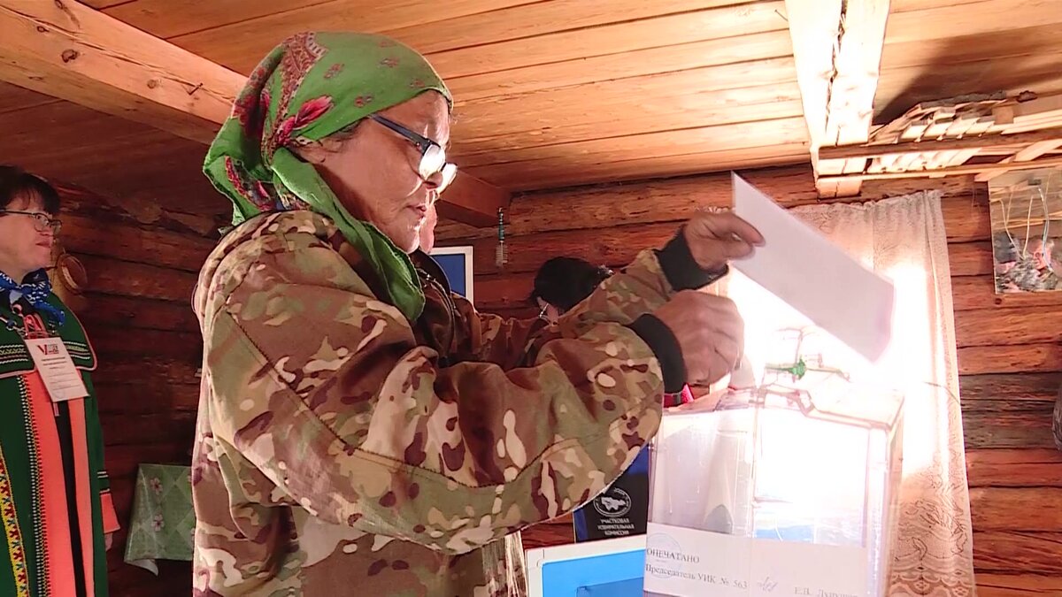 Почти две тысячи человек в Югре уже проголосовали досрочно. Это избиратели, которые работают вахтовым методом, и жители отдаленных населенных пунктов. Правом голоса должен воспользоваться каждый, поэтому члены участковых комиссий к месту назначения добираются и на лодках, и на автомобилях высокой проходимости, и даже на вертолетах. Трехчасовой перелет — и сотрудники избирательной комиссии высаживаются на границы одного из родовых угодий Нижневартовского района. В руках запечатанные урны для голосования, избирательные бюллетени. Расставляют мобильные стенды с информацией о кандидатах. Почти все как на избирательном участке в городе. Кстати, о досрочном голосовании таежные жители узнали благодаря мобильному интернету. «Интернет нам провели в прошлом году, в июне. Дети пользуются, смотрят мультики. И мы пользуемся, выходим на связь», — говорит житель родового угодья Ефим Кунин. У жителей стойбищ и родовых угодий сейчас горячий сезон: собирают грибы и ягоды, заготавливают рыбу. Благодарят,