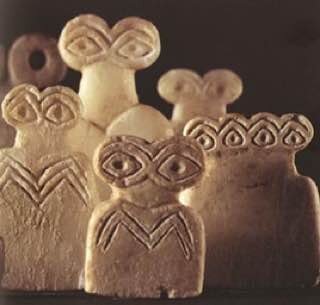 Уникальные абстрактные фигурки из Тель-Барака – Месопотамского города на территории нынешней Сирии. В древние времена Тель-Барак считался интернациональным городом. На протяжении веков он был домом для нескольких цивилизаций, включая шумеров, вавилонян, аккадцев и миттани. Город был окончательно заброшен только около 2000 г. до н.э. Глазастые идолы, обнаруженные на этом месте, датируются примерно 3300 г. до н.э. На многих вырезаны множественные глаза, на других — украшения, а на третьих — изображения «детей» — маленькие глаза и тело, вырезанные на более крупной фигуре По мнению историков и археологов, широко раскрытые глаза символизируют особое внимание к богам. Украшение фигурок могло быть персонализировано, на некоторых есть зигзаги – возможное изображение одежды. К сожалению, из-за войны в Сирии, прелюбопытнейшие артефакты древней культуры уже много лет находятся под угрозой. Около 11 археологических памятников в Сирии были повреждены в результате бомбардировок, а склады музе