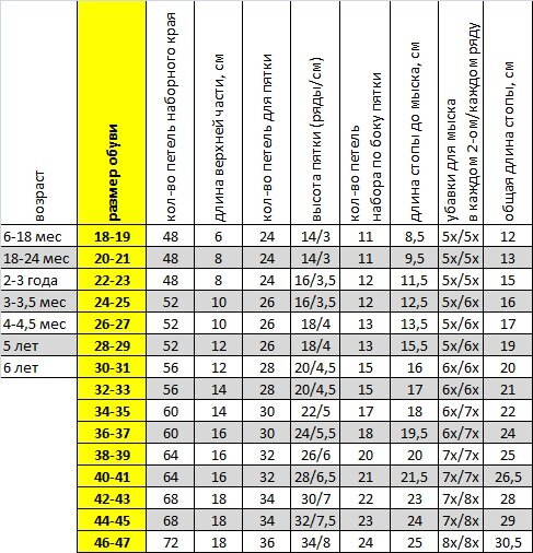 Приветствую! Предлагаю удобные таблицы с готовыми расчетами, чтобы упростить процесс вязания носков. Для детских размеров, в таблице есть отдельная строка, которая подсказывает примерный возраст ребенка. Для вязания из тонкой пряжи (100г/400м, 50г/200м) на спицах 2 мм - 2.5 мм. Для вязания из более толстой пряжи (100г/300м, 50г/150м) на спицах 3 мм Сохраняйте себе - ведь это очень удобно! Приятного вам вязания!