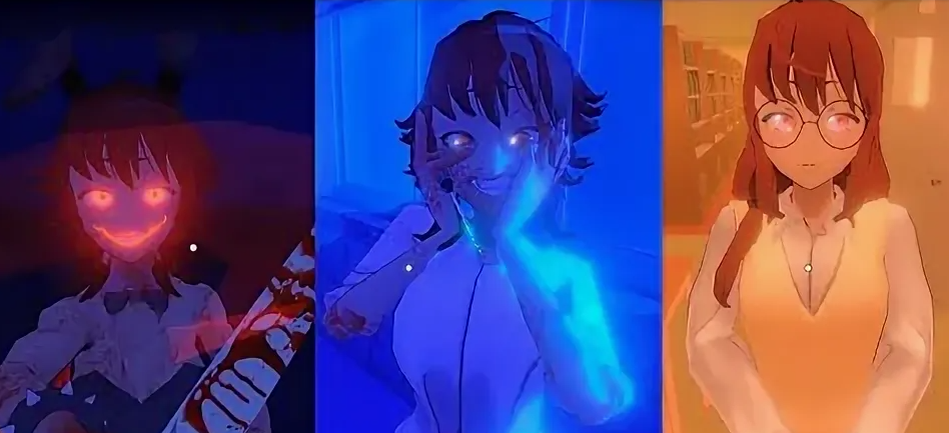 Сама по себе Сайко все равно дурная - она носится за своим возлюбленным и не хочет его выпускать из школы, но если вы как-то обидите ее... Например толкнете или попытаетесь сбежать, или начнете собирать ее дневник по кусочкам, то в девочке проснется вторая личность. Вот она уже злобная беспощадная маньячка, гоняющаяся за вами с ножом по всей школе. Правда, Сайко все равно будет приходить время от времени в себя, но вам это мало поможет - при любом неосторожном действии ее глаза загорятся красным огнем и она с угрозами бросится на вас.