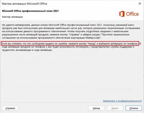 1) Итак, чтобы активировать Office 2021 по телефону, у Вас должен быть установлен Microsoft Office 2021, скачать его можете с сервера Microsoft по прямой ссылке. Далее, после установки приложения запускаем любое приложение Офиса, к примеру Exel, и вводите туда Ваш ключ активации от Microsoft Office 2021. Если у Вас нет данного ключа, приобрести его можете в нашем каталоге. 2) Затем, в мастере активации выбираем пункт активации по телефону и нажимаем "Далее". 3) В следующем окне в выпадающем меню выбираем Вашу страну пребывания в шаге 1, на примере у нас будет Россия. После нужно позвонить (полный список номеров Microsoft) Попадаем в меню активации по следующим шагам: - В начале звонка нажимаем 1, соглашаясь с записью разговора. - Далее нажимаем 3 - это активация Microsoft Office на ПК. - После жмем 1 и вводим цифры роботу из шага 2 как на скриншоте ниже. Обратите внимание! Вам необходимо вводить свой код установки, который именно у Вас в программе окна активации по телефону, на нашем с