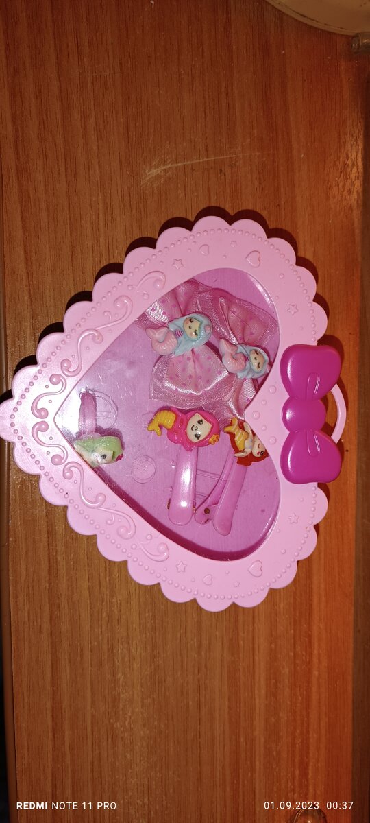 Всем привет! Конечно все знают кукурузные палочки Мика с крутыми подарками. В этой и следующих статьях я хочу разобрать именно подарки. Т.к у меня дочка любит кукурузки, а еще больше приходит в восторг от приятного сюрприза внутри пакетика, то мы покупаем мику почти каждый день. В основном берем для девочек, но когда их нет в наличии, то подойдут и для мальчика. В этой статье речь пойдет о первом нашем подарки от мики, с чего началась история покупок. Красивый набор для девочки. Сама коробочка сделана из пластика, окошечко из пленки. Внутри коробочки сам набор: 4 заколки и колечко. На всех аксессуарах фигурки русалочки. Крепятся на пленку. Заколки парные. Первая пара полностью пластик. Ее мы проверили в использовании, держится очень плохо. Вторая пара заколок: фигурка пластик, заколка сама металлическая + обмотана тесьмой. Выглядит симпатично, но в деле мы ее не пробовали. Третий аксессуар это колечко. Пластиковое. И что мне нравится, оно с разделителем, а значит, налезет на лю