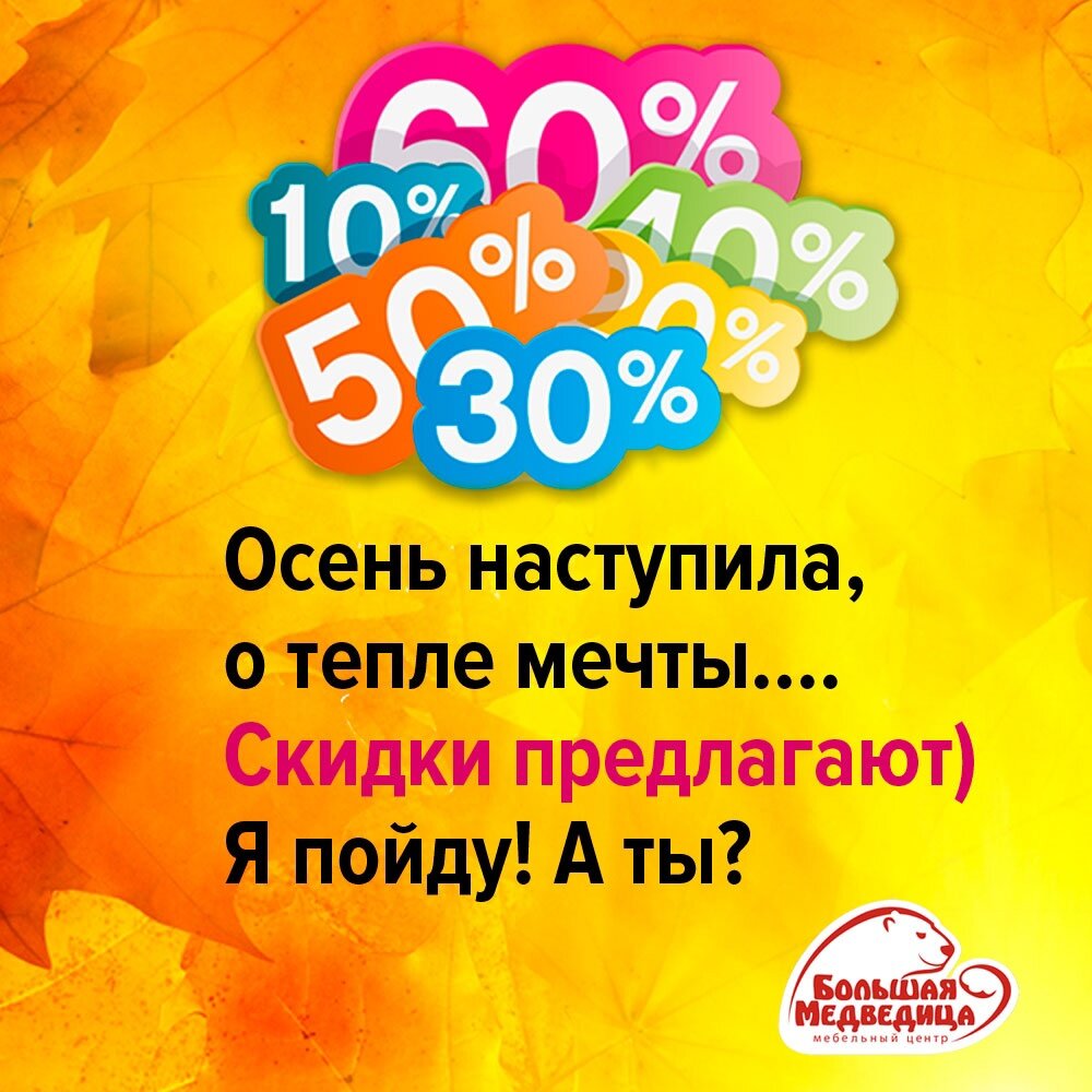 А Мебельный Центр "Большая Медведица" поможет в этом. Во многих наших салонах - осенние скидки от 10 до 80%!