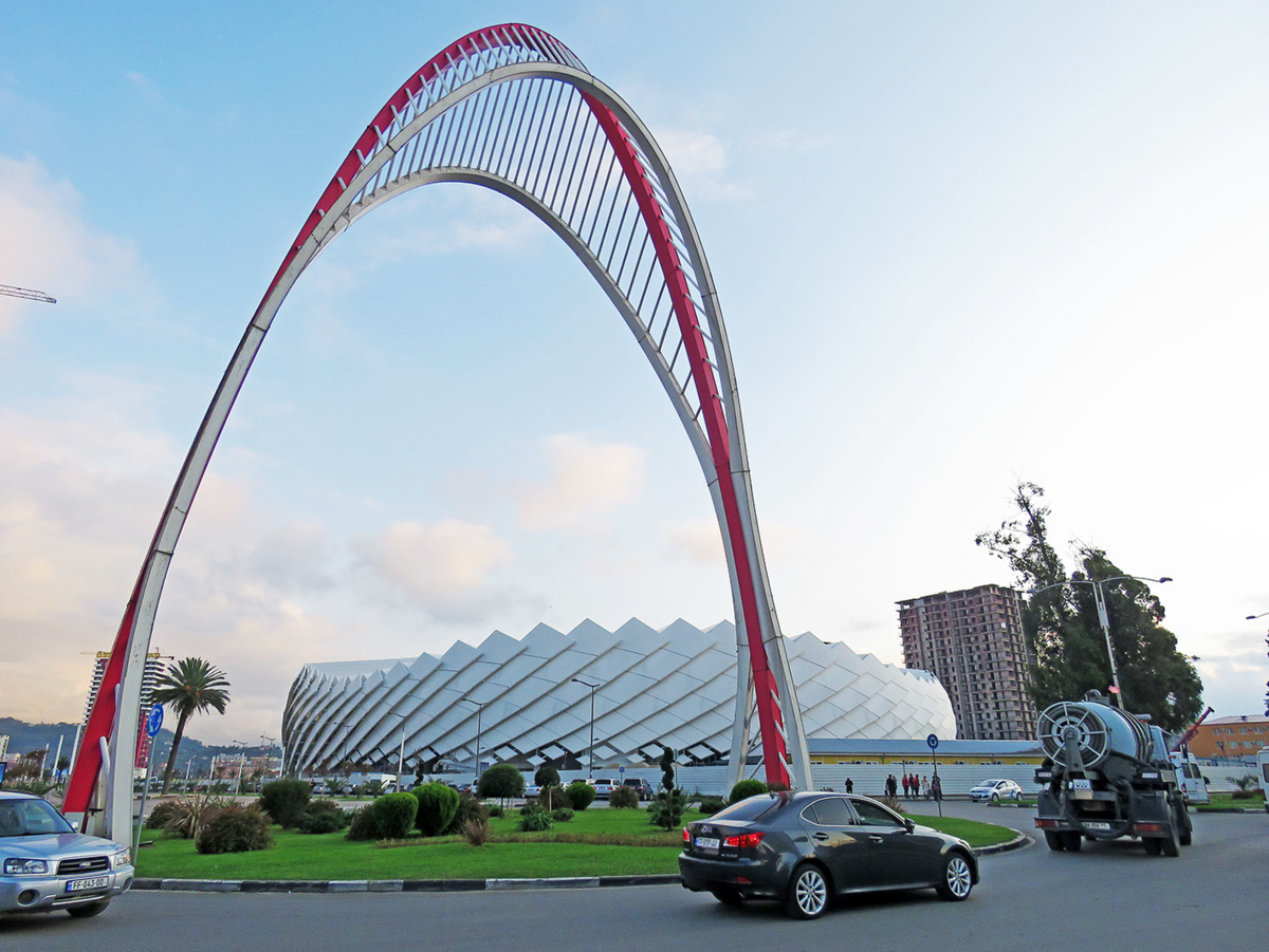 ...открывает так называемый Новый Батуми - впечатляющий район новостроек, возникший уже после заката эпохи Саакашвили. Первый импульс этому району дал шейх Нахаян бен Мубарак аль Нахаян из Абу-Даби, в 2012 году подаривший Батуми 10 000 пальм. Высадили их, конечно, по всему городу, но в первую очередь - на Аллее Героев (видимо, существовавшей тут и в советские времена), перпендикулярной дороге на Турцию и берегу Чёрного моря.