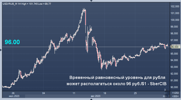 Временный равновесный уровень для рубля может располагаться около 96 руб./$1 - SberCIB Курс доллар/рубля на Мосбирже интервалами в 1 минуту Курс доллар/рубля на Forex интервалами в 4 часа Временный равновесный уровень для национальной валюты может располагаться около 96 руб./$1, пишут эксперты SberCIB Investment Research. "Похоже, спрос на валюту и ее предложение в пятницу будут сбалансированы. С одной стороны, новости о возможном выкупе "ЛУКОЙЛом" акций у нерезидентов поддержат активность покупателей валюты, а с другой - текущие уровни интересны для продажи валюты экспортерами, как показал четверг", - отмечают они. Боковой тренд на рынке ОФЗ, вероятно, продолжится на торгах в пятницу ввиду отсутствия новых факторов, способных повлиять на котировки бумаг, считают аналитики Сбербанка. MarketSnapshot - Новости ProFinance.Ru и события рынка в Telegram По теме: Курс рубля падает после значительного повышения ставки Банком России Заметка Bloomberg о возможном возврате к контролю за движение