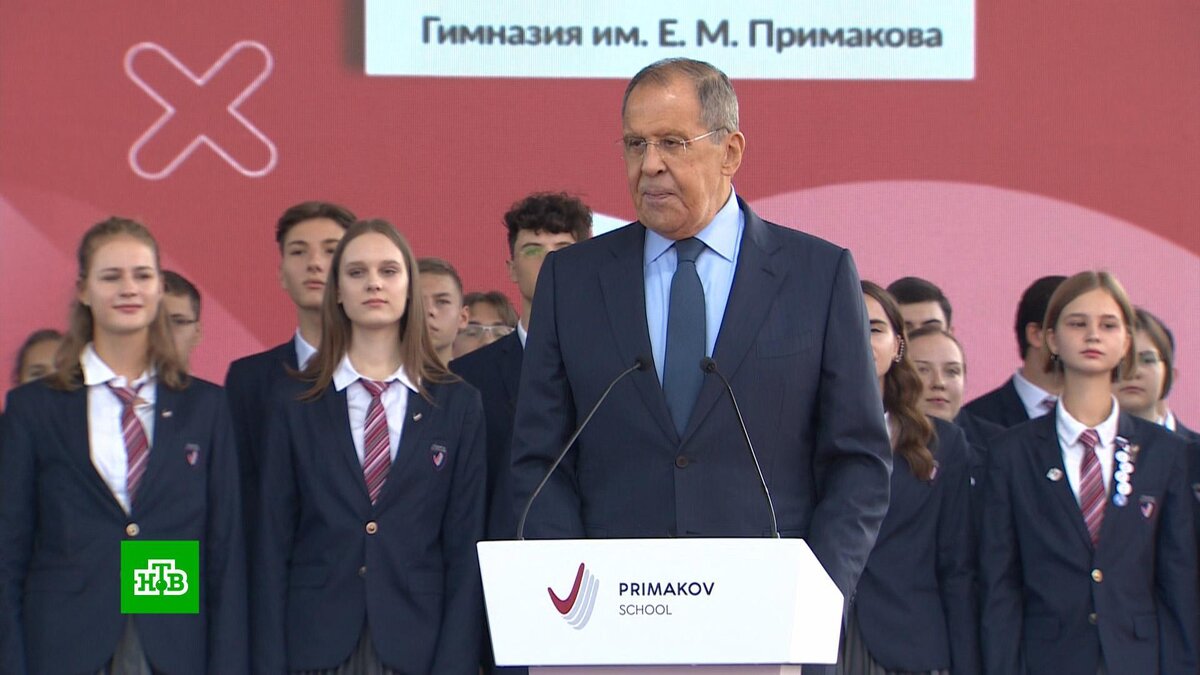 [ Смотреть видео на сайте НТВ ] На торжественной линейке в гимназии имени Е. М. Примакова в Подмосковье к ученикам обратился министр иностранных дел. Сергей Лавров, министр иностранных дел России: «Хочу прежде всего пожелать первоклассникам успешно войти в новое для вас качество жизни, в школу. Вы сегодня переступаете ее порог. Наверняка у вас будут новые знакомства, а может, они уже состоялись. Появятся новые друзья. Будут и успехи, и сложности, и испытания». А 11-классникам Сергей Лавров в последний учебный год пожелал сделать правильный выбор, который будет отвечать их собственным интересам. Отдельно глава МИДа отметил роль учителей. По его словам, педагоги помогают подрастающему поколению мыслить правильно. На торжественной линейке в гимназии Примакова также выступил губернатор Московской области Андрей Воробьёв. А гимн России вместе с учениками исполнила группа «Любэ». [ Смотреть видео на сайте НТВ ]