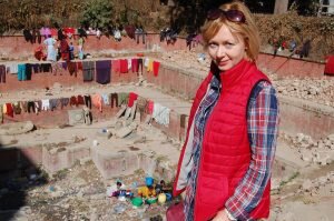 Встречающий оказался не водителем, а хелпером. Водитель мирно дремал за рулем. Пришлось расстаться с еще одним долларом за помощь в доставке к авто и поднесенный рюкзак. Долго ехали по Катманду, водитель что-то рассказывал, большую часть не понимал. Возникало ощущение, что катаемся по кругу. Грязь, шум. Наконец-то в каком-то переулке припарковались. Что это, куда приехали? Водитель указал на вывеску сзади на заборе. Вроде правильно. Пошел нас провожать, т.к. сами бы мы сразу не нашли. Какой-то разрушенный котлован, где внизу стирались люди, строительный мусор под ногами, глухие заборы. Метров 150 и мы во дворике Andes house, наш первый забронированный отель в этом путешествии.