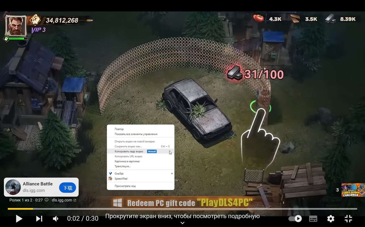 Компания Google упростила получение изображений из видеороликов, воспроизводимых в браузере Chrome. Прежде необходимо было делать скриншот, на который могла попасть полоса прокручивания видео, а качество изображения часто оставляло желать лучшего. Теперь при работе с Chrome и любым другим браузером на Chromium делать подобные изображения проще. Поставив видео на паузу, можно нажать правой кнопкой мыши и выбрать в контекстном меню команду «Копировать видеокадр». Быть может, разработчики ещё не полностью проработали данную функциональность. На YouTube при нажатии правой кнопкой мыши сначала может появляться меню самого YouTube, и только потом нужное контекстное меню. При использовании команды браузер захватывает остановленный кадр и можно добавлять полученные изображения в поля браузера, вроде Документов Google. Далее уже можно сохранить полученное изображение. Пока не поддерживается сохранение изображений прямо на рабочий стол или в любое другое указанное место в виде готового файла. Та