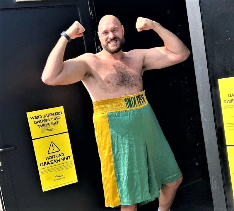 Тайсон Фьюри издевается над Усиком после боя с Дюбуа. Фото в натянутых шортах