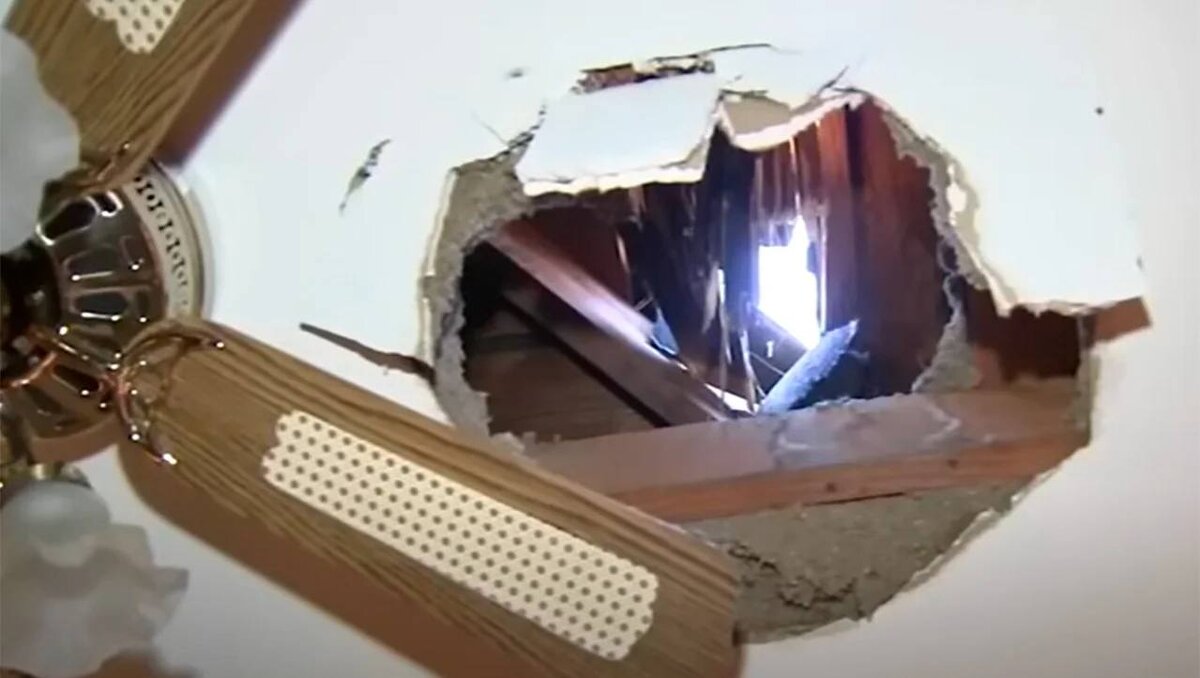 Огромное нечто неизвестного происхождения упало на жилой дом в США