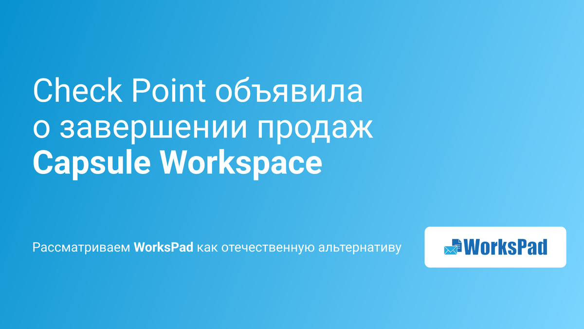Ведущий поставщик решений по кибербезопасности Check Point объявил о прекращении продаж решения Capsule Workspace, обеспечивающего защищенный мобильный доступ к корпоративным данным Что нам известно на данный момент: В связи с окончанием продаж решения: инженеры TS Solution предлагают ознакомиться с возможностями продукта WorksPad, отечественной альтернативой Capsule Workspace WorksPad неоднократно признан лидером на российском и международном рынках за лучшие решения в области корпоративной мобильности. Команда обладает более чем 20-летним опытом разработки программного обеспечения, продаж, маркетинга и менеджмента в ведущих российских и международных компаниях Разработки компании не имеют аналогов в РФ и защищают данные организаций благодаря широкому набор средств обеспечения безопасности и инструментов их настройки. А также помогают разделить корпоративное и личное: компания управляет приложением, а не устройством, и персональные данные находятся под полным контролем пользователя Пр