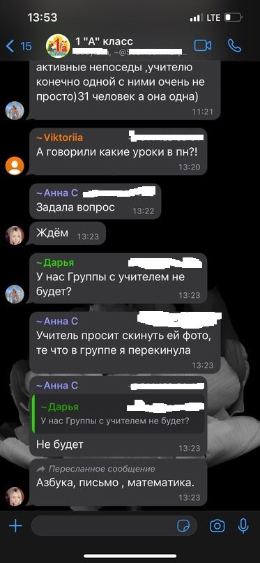Школа только началась, а в родительских чатах уже есть недовольные. Вот такой пост увидела сегодня в одной мамской группе. Женщина возмущается, как это так, что учительницы не будет в общем чате класса: Как по мне, раньше без чатов жили и нормально. Номер учителя и не нужен был - все самостоятельно и с первого раза усваивали информацию. Чат - это не обязанность учителя. Так что правильно делает. Избавляет себя от дополнительной неоплачиваемой нагрузки. Важную информацию она передала, а все остальное её волновать не должно. Просто для родителей их дети центр вселенной, а для неё это работа не больше. да и судя по скрину, родители первоклассников не знают, какие занятия будут в ближайший учебный день. Вопрос: по какой причине? Получается, не были ни на родительском собрании, ни на 1 сентября. Что странно для родителей первоклашек. Ну или были, но пропустили мимо ушей - можно ведь потом потребовать чат. Довольно безответственно выглядит с их стороны. Потом заставят учителя домашку пересы