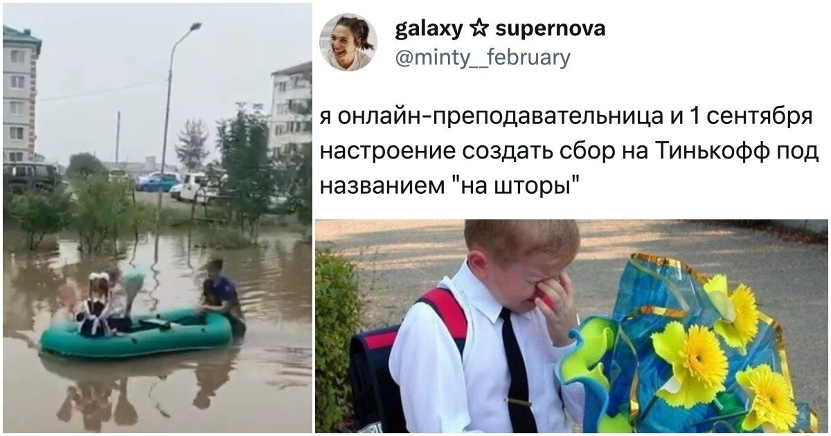 1 сентября традиционно проходят школьные линейки. Кто-то впервые идёт в школу, родители активно готовятся, для остальных это лишь обычный день, когда нужно работать. Давайте посмотрим, как проходят линейки в стране и что думают люди по этому поводу. Сборная солянка из мыслей, историй и мемов. 1. На контрасте 2. Столько мыслей в голове у родителей 3. Поддержим маркетологов лайком 4. А вот и мемы на школьную тему от тех, кто только что пришёл со школьной линейки 5. А в Приморье дети плывут на линейку 6. Вот такая форма Родители рассказали, что такую форму (причём на несколько размеров больше) выдали и мальчикам, и девочкам. По требованию родителей линейку в форме отменили. Но директор потом сказал, что это форма была не для линейки, а для внеклассных мероприятий. 7. Когда понял, что ходить в школу надо ещё 11 лет 8. Наше пожелание школьникам 9. Классика первого дня в школе, до и после 10. И такое на линейках случается 11. А что, онлайн-преподавателям шторы не нужны? 12. Как говорится,