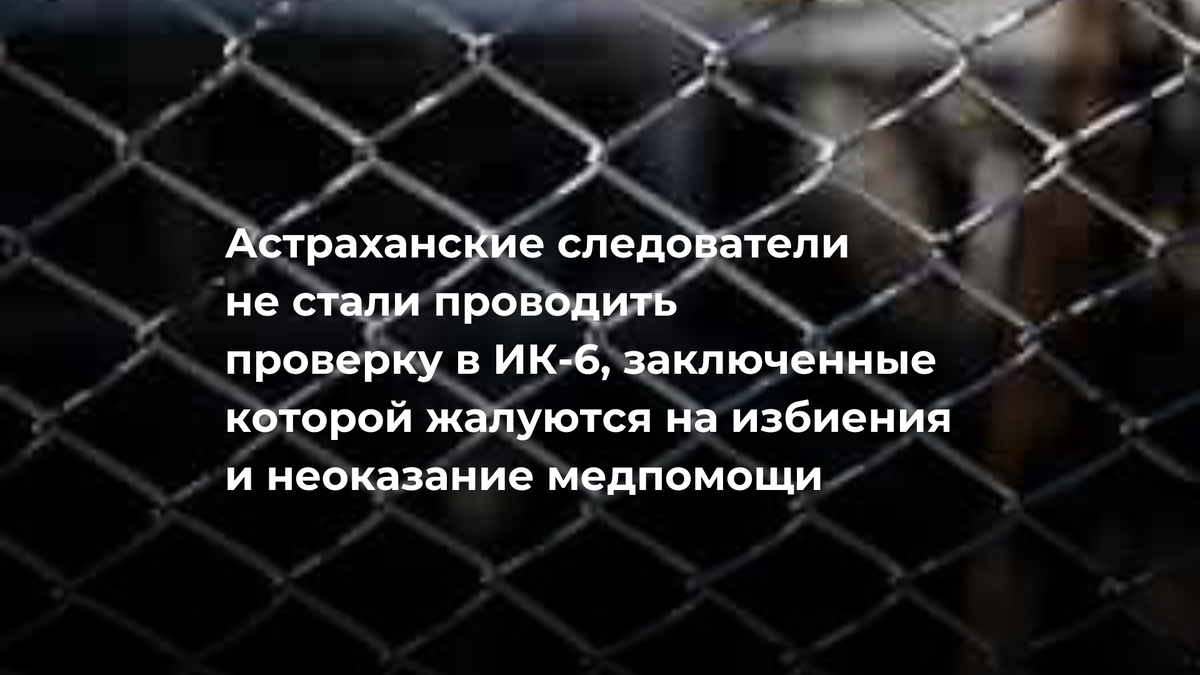 Астраханские следователи не стали проводить проверку в ИК-6, заключенные которой жалуются на избиения и неоказание медпомощи