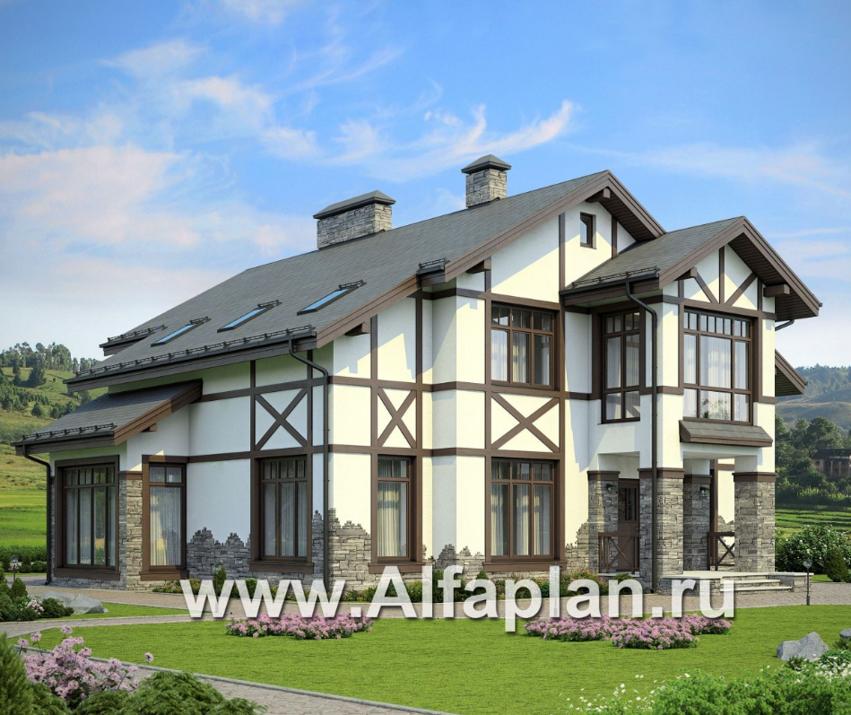 Проект дома в стиле фахверк: роскошный загородный дом, G52A, 4 спальни, 228 м2.