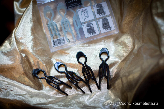 Чуть больше двух с половиной лет назад в интернете начали греметь шпильки FIONA Franchimon №1 Hairpin. Эти шпильки необычной формы наделали много шума, и, думаю, дубли вышли довольно быстро, но это было какие-то сакральное знание, тайны мадридского двора, «напишите мне в личку, я расскажу, где взять полный аналог»… И вот недавно выпустили реплику Шпильки для волос Instyle. Набор шпилек продаётся в пластиковой коробочке, выпускается в разных цветах. Я видела в продаже прозрачный, разбеленный розовый, разбеленный бирюзово-голубой (на тиффани не слишком похож), несколько разбеленный коричневый. Я взяла себе сразу чёрные и голубые. На коробке есть инструкция по использованию, но представлен только один вариант с мальвинкой. У Фионы есть много обучающих видео с разными причёсками. Шпильки выполнены аккуратно, ничего не торчит, нет никаких швов, зазубрин. У меня есть набор оригинальных шпилек. Набор из пяти штук продаётся в таких коробках. Там внутри вставлен поролон с прорезями, шпильки рас