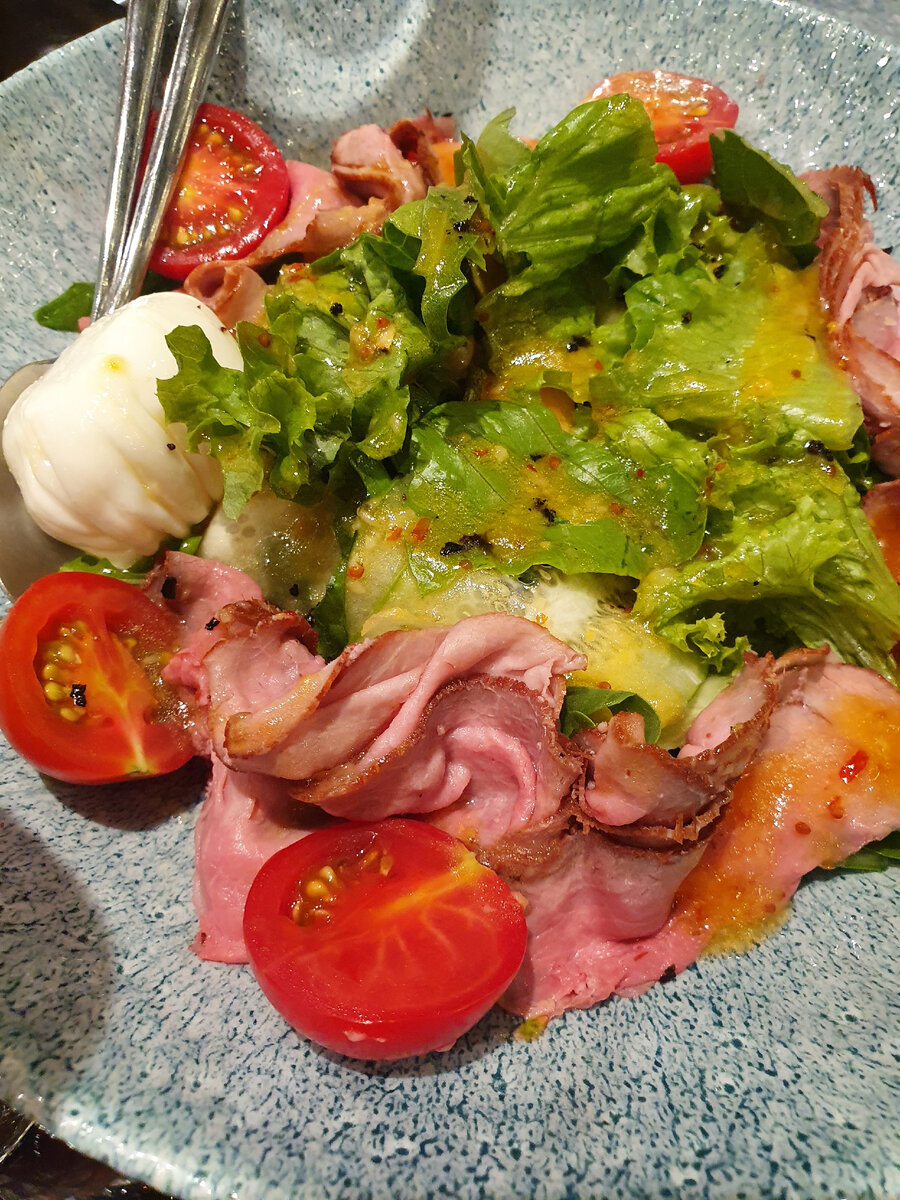 Рекомендуем попробовать вино, салаты и фруктовую тарелку.