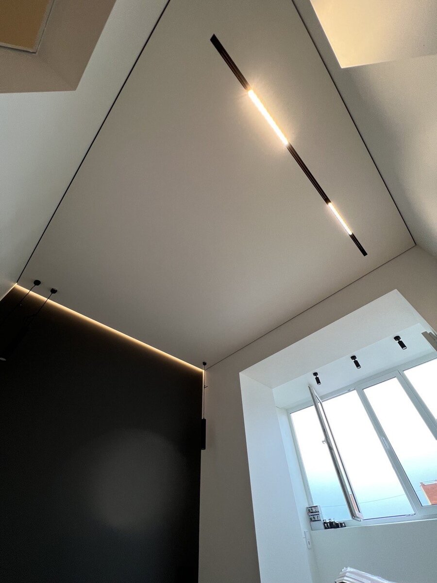 Спальня - это место отдыха, где мы проводим большую часть времени в темное время суток и утром. Поэтому важно выбрать натяжной потолок, который будет не только красивым, но и удобным для нас. Вот несколько советов при планировании потолка в спальне: 1. Оформление оконного проема и шторы: При установке натяжного потолка можно создать нишу для скрытого крепления штор. Это не только эстетически приятно, но и позволяет избежать проникновения света. Специальный профиль позволяет скрыть крепление штор к карнизу, что делает потолок более эстетичным и функциональным. 2. Освещение: В спальне необходимо иметь два вида освещения: основное и декоративное. - Основное освещение должно быть достаточно ярким для уборки и комфортного времяпрепровождения. Это может быть накладные или врезные светильники, люстра, световые линии или классические треки. - Декоративное освещение включает парящий профиль над изголовьем кровати или по периметру помещения, а также прикроватные светильники. Они