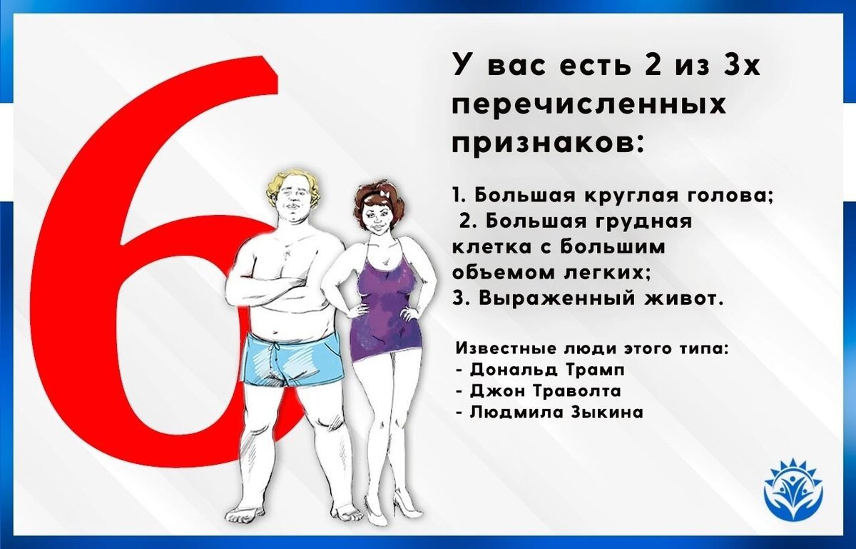 Основной гормон данного эндокринного соматипа – окситоцин. Он выделяется в задних долях гипофиза. Окситоцин – гормон нежной, долгой привязанности и заботы. Он увеличивает образование клеток молочных желез и оказывает комплексное воздействие на весь организм. Внешний вид Если вам нужно понять, не окситоциновый ли перед вами человек, смотрите на талию. Если она есть, то это, вероятно, представитель какого-то другого соматипа. Окситоциновый тип –человек крупный или среднего роста, вес его располагается в области груди и живота. При этом у них могут быть довольно тонкие по сравнению с верхней частью тела ноги, так что они кажутся непропорционально сложенными, как шарик на спичках. Но это не обязательно, главное в данном случае – развитость грудной клетки и плеч. Голова у окситоцинового типа крупная, кожа мягкая, лицо округлое, с пухлыми щеками и маленьким, иногда курносыми и часто розовым носом. Цвет лица у них обычно здоровый, вид цветущий. Кости крупные, крепкие, служащие хорошей опорой