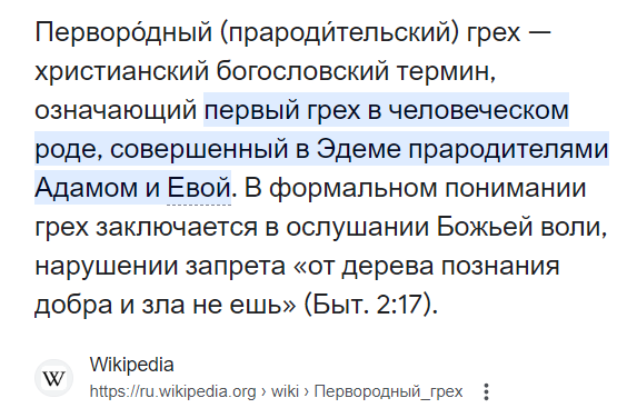 Теперь про христианство, а именно про первородный грех: