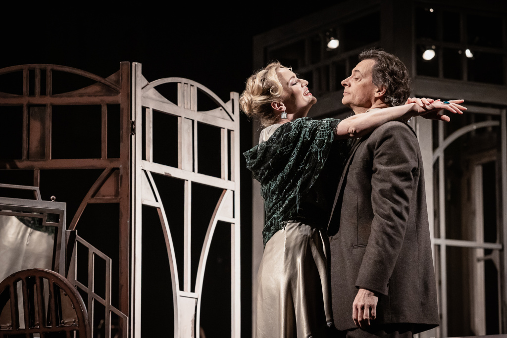 В «Леопольдштадте» занято 25 артистов. Все они действуют как единое целое, мерно раскручивая шестерёнки действия, и только экспрессивный тон речи напоминает о «Нюрнберге», где персонажи существуют на остром конфликте от начала до конца спектакля. Математические гипотезы, бегство из Египта, Венская опера — всё смешалось в доме богача и аристократа Германа Мерца, расположенном в еврейском районе Вены Леопольдштадте. Мерц — преуспевающий владелец фабрики, завсегдатай модных салонов, тонкий ценитель искусств. Но он – еврей, и это перечёркивает все его заслуги, все личные качества и делает уязвимым в обществе. Нервная выразительность Евгения Редько, его особая мужская стать совершенно очевидны в роли Мерца — джентльмена по духу, но не по крови. В сцене с кадетом Фрицем (Даниил Шперлинг), с которым изменила ему жена, Мерц не просто уязвим, а беззащитен, так как закон запрещает австрийским подданным давать сатисфакцию еврею. Пронзительной болью окрашена эта сцена, одна из немногих, что можно выделить из потока спектакля.
