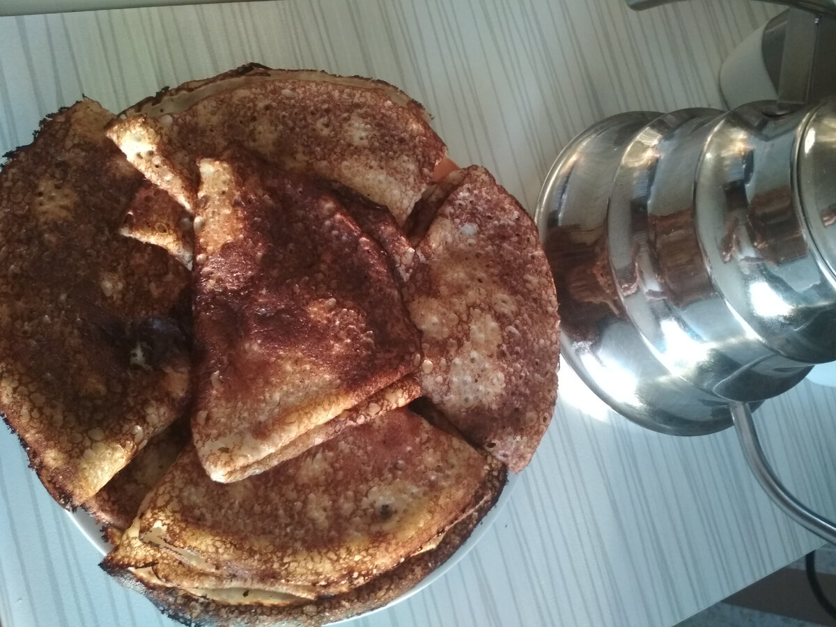 Вкусные блины на молоке ,самый простой рецепт. Нам понадобятся : 2яйца, сахар _100грамм, щепотка соли , растительное масло _ 3 столовые ложки , молоко 500 мл , мука. В миску разбить яйца, добавить соль и сахар, перемещать венчиком . Влить молоко и растительное масло и перемешать . Добавить муку ,должно получиться чуть льющееся тесто . Выпекаем блины в хорошо разогретой сковородке . Приятного аппетита ☺️