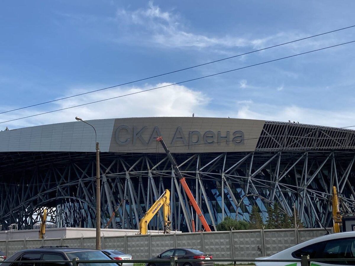 На спорткомплекс в Московском районе города прикрепили огромную надпись. В субботу, 2 сентября, на «СКА Арену» в Петербурге установили вывеску. Об этом сообщил корреспондент «Форпоста». Серая надпись на стадионе, окружённом строительной техникой, хорошо видна с улицы. Название прикрепили под крышей спорткомплекса. Отметим, «СКА Арену» планируют открыть уже в этом месяце. В апреле этого года объект был готов на 90%. Позднее вице-губернатор Петербурга Борис Пиотровский уточнил, что этой осенью на стадионе пройдут первые хоккейные матчи. Кроме того, на площадке можно будет проводить соревнования по 26 видам спорта. Напомним, в начале августа сообщалось, что промзону возле «СКА Арены» могут застроить жильём. По данным СМИ, на территории рядом со спорткомплексом планируют возвести 12-14-этажные ЖК, детский сад и школу на 1150 мест.