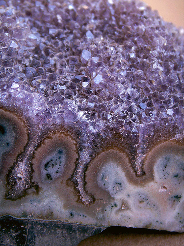 Натуральный друзовый кварц, образующийся на поверхности агата, является, пожалуй, наиболее распространенным материалом-друзи и одним из первых материалов, используемых для изготовления драгоценных камней-друзов.