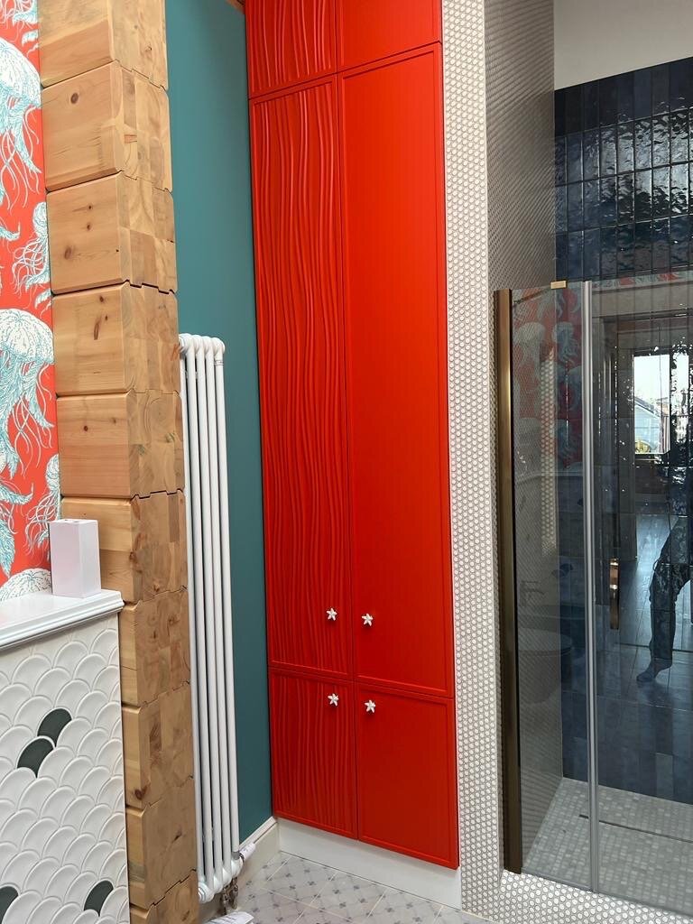 Когда мы говорим об индивидуальных заказах, мы каждый раз имеем дело с чем-то новым. 🐚 На фото необычная идея для интерьера ванной. Наша реализация: яркие морские цвета, рифленые фасады с волнами и дизайнерские ручки в виде морских звезд. Нам кажется, что за счет морской тематики в деталях удалось передать задуманную атмосферу. Дизайнер: Селиванова Вера менеджер: https://t.me/ornament_fabrika сайт: https://fabrika-ornament.ru почта: sale-smr@fabrika-ornament.ru vk: https://vk.com/fabrika_ornament
