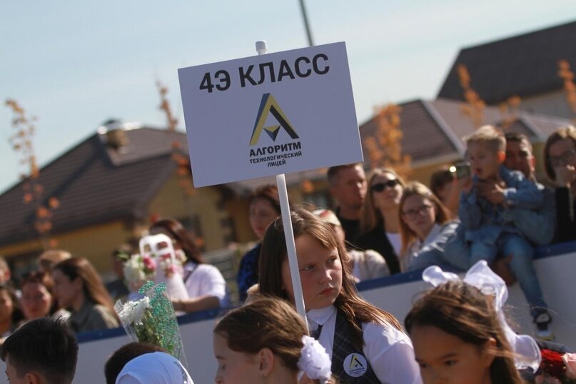 Праздничная линейка началась с выступления директора «Алгоритмы» Ларисы Глибиной. До этого директор образовательного учреждения заверила корреспондента «ВК», что количество учеников не скажется на качестве образования.