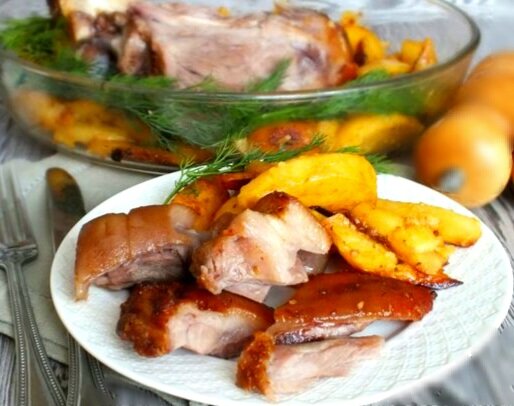 Привет друзья и гости канала! Приготовление свиной рульки – процесс не совсем быстрый, но простой, а результат получается замечательный. Вкусное, сочное и ароматное блюдо придётся по вкусу даже самому привередливому гурману. Готовим рульку, запеченную в рукаве с картошкой. Ингредиенты: 1️⃣ Рулька свиная - 1 шт. 2️⃣ Картофель - 9-10 шт. 3️⃣ Кетчуп - 3 ст.л. 4️⃣ Соевый соус - 4 ст.л 5️⃣ Смесь перцев по вкусу 6️⃣ Чеснок - 4 зуб. 7️⃣ Кориандр - 1 ч.л. 8️⃣ Острый перец чили , соль по вкусу. 9️⃣ Горчица - 1 ст. 1️⃣0️⃣Растительное масло - 2 ст.л. Пошаговое приготовление ⬇️ Смешиваем в глубокой миске кетчуп, соевый соус, горчицу, измельченный чеснок, перец чили, смесь перцев. Свиную рульку моем, чистим, сушим бумажным полотенцем , перекладываем в миску с маринадом и тщательно обмазываем со всех сторон. Накрываем миску пищевой плёнкой и убираем в холодильник на пару часов, чтобы рулька хорошо пропиталасть специями. Перед тем как достанем из холодильника рульку, моем, чистим картофель.