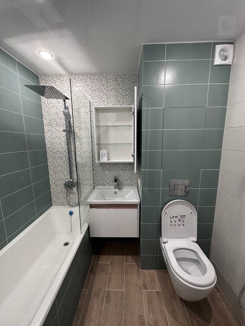 В такой ванной находятся четыре главных предмета – это душ, унитаз, раковина и сама ванна. Однако набор предметов далеко не всегда ограничивается таким количеством. Если площадь ванного помещения достаточно большая, то можно добавить к унитазу биде, а к душу – гидропанель с массажем. Душевые кабины бывают разных форм, но гораздо красивее выглядят полукруглые. Если место еще останется, можно установить дополнительную раковину – особенно это будет удобно для большой семьи. Если после всех установок у вас все еще остались денежные средства, то обычную ванну можно заменить на джакузи. Так обустроенная ванная комната уже перестанет быть просто местом для гигиенических процедур, а превратится в полноценный СПА-салон, в котором в любой момент можно будет отдохнуть и расслабиться.