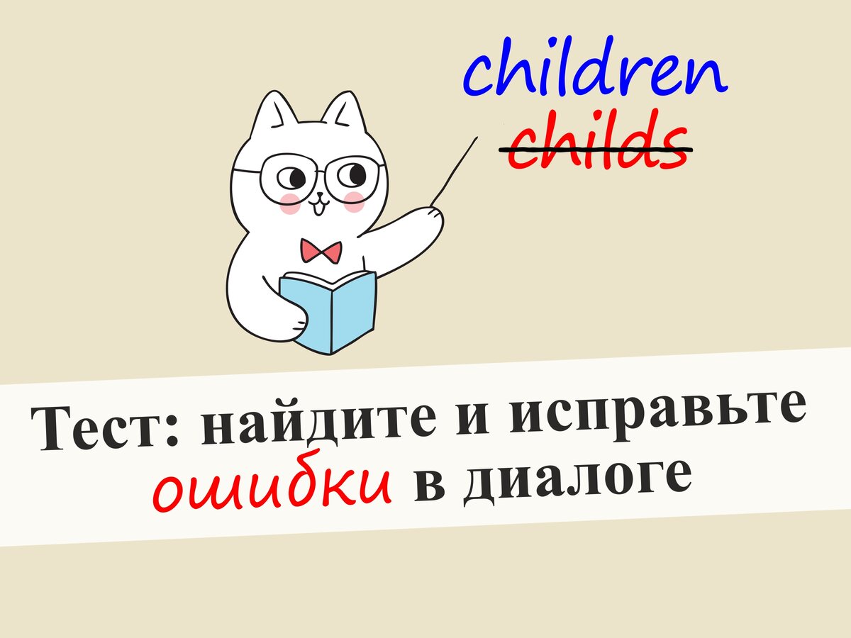 Здравствуйте, уважаемые читатели! На связи снова English Cats! Сегодня вы побудете в моей шкуре! Как вам известно, веду я этот канал по английскому языку, так как его преподаю, в связи с чем мне приходиться очень часто проверять работы моих учеников. Готовы сегодня сделать то же самое, то есть найти ошибки в диалоге и исправить их? Давайте это и проверим! Тест состоит из 10 вопросов, в каждом из которых может быть только один правильный ответ. Обратите внимание, что в некоторых вопросах ничего менять не надо, так как предложение уже составлено верно! Будьте внимательнее! Поехали! Надеюсь, что вас порадовал ваш результат! Спасибо, что были с English Cats! Не забывайте ставить лайки и подписываться на канал! #english cats #english #английский язык #английскийонлайн