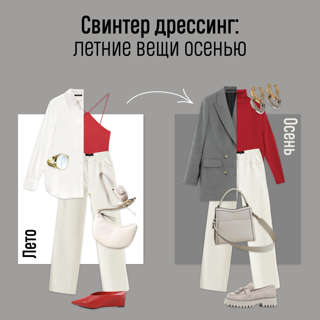 Термин сомнительный, но интуитивно понятный. Если мы заимствуем из летнего гардероба вещи в зимний, то это свинтер-дрессинг. Только не забывайте про здравый смысл. Все мы в юности бегали в юбочке и тонких колготках зимой. Так вот: это был не свинтер дрессинг, а безмозглинг, пока мама не увидинг.