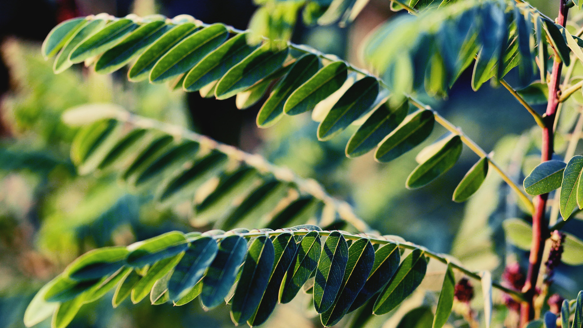 Бойкие сверкающие листки акации похожи на виноградины и отражают в своем глянцевом блеске голубые оттенки неба.